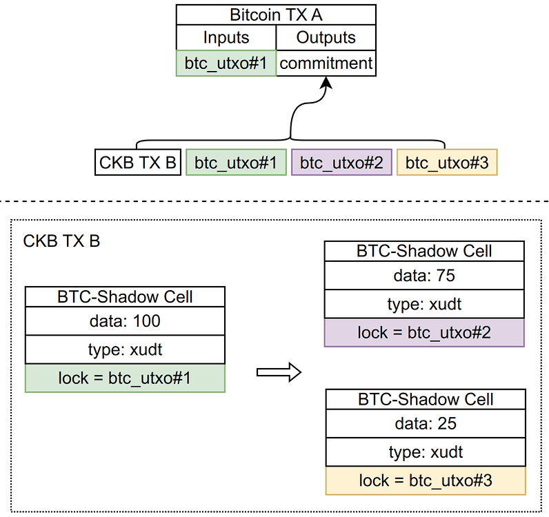 * The next state change requires the use of **`btc_utxo#2`** and **`CKB_TX_B.output`**;