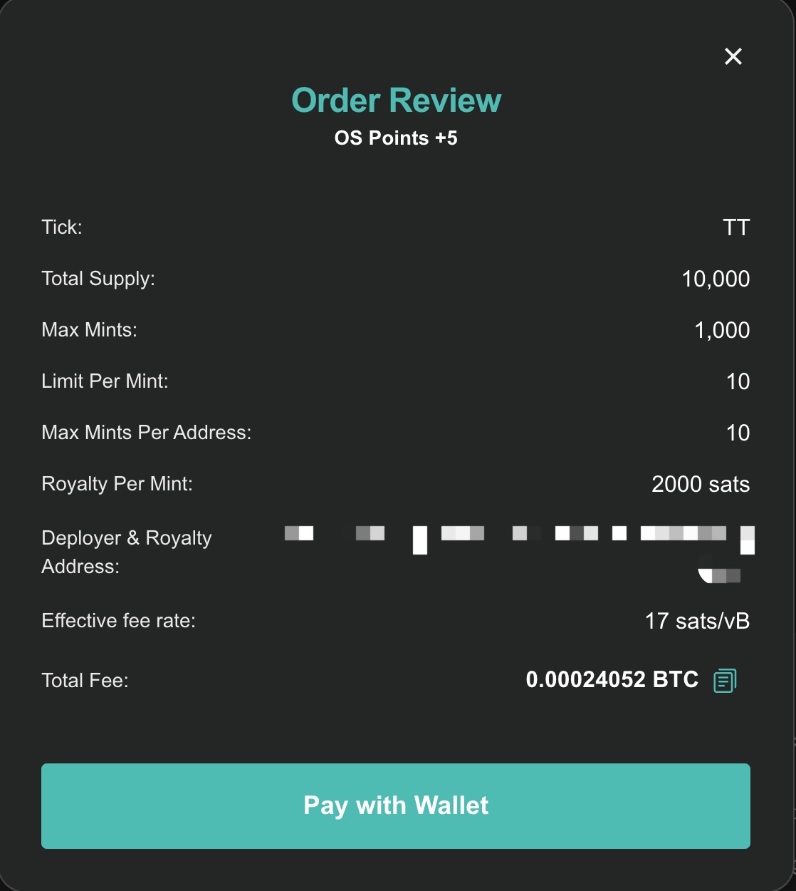 **Deployer & Royalty Address:** Token issuer and royalty recipient address.