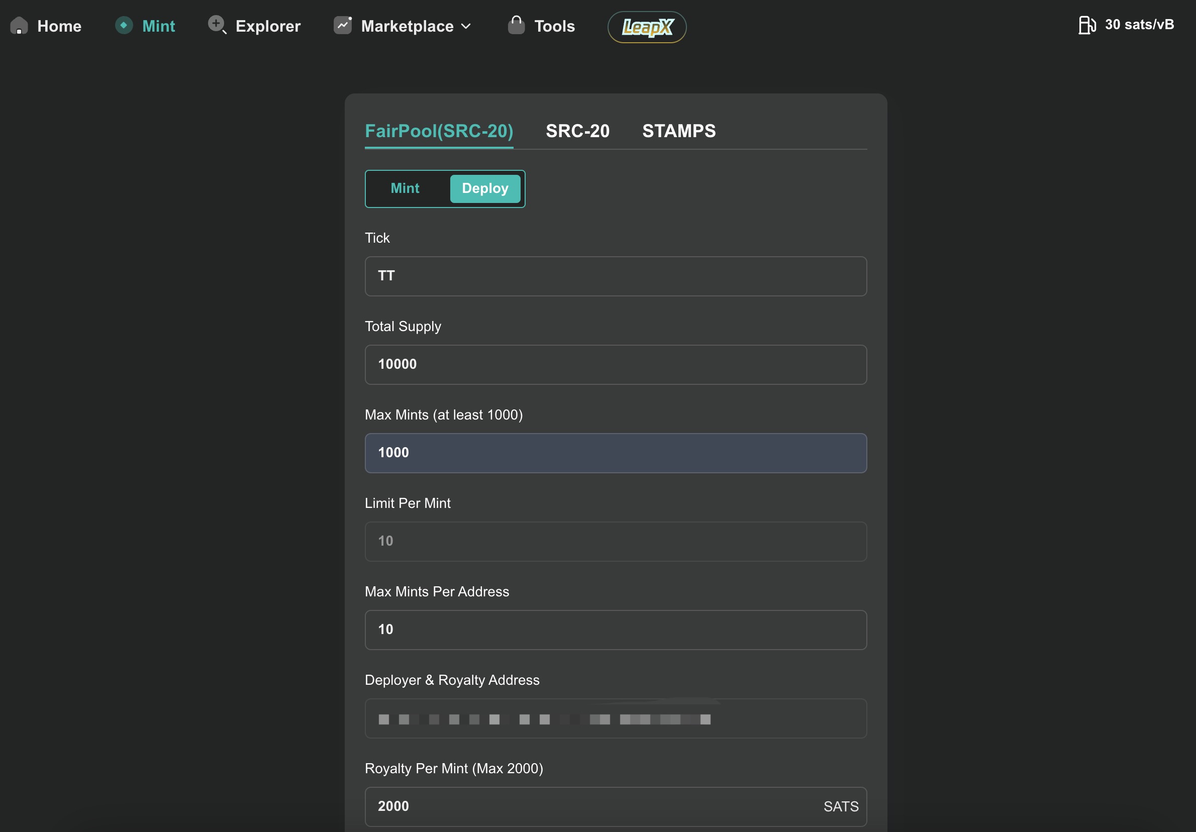 Go to SRC20 FairPool deploy page <http://openstamp.io/mint?tab=fair&fair-type=deploy> Provide the following info,